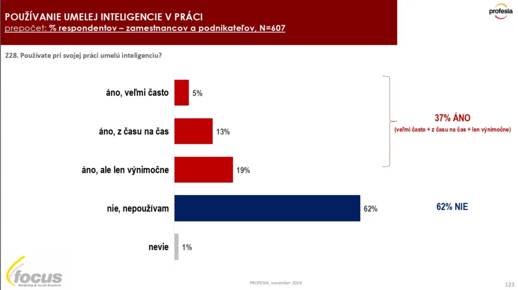 Z týchto údajov vieme vyčítať, že väčšina ľudí na Slovensku zatiaľ umelú inteligenciu pre svoju prácu využiť nepotrebovala, nechcela alebo nemohla.