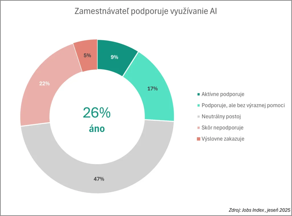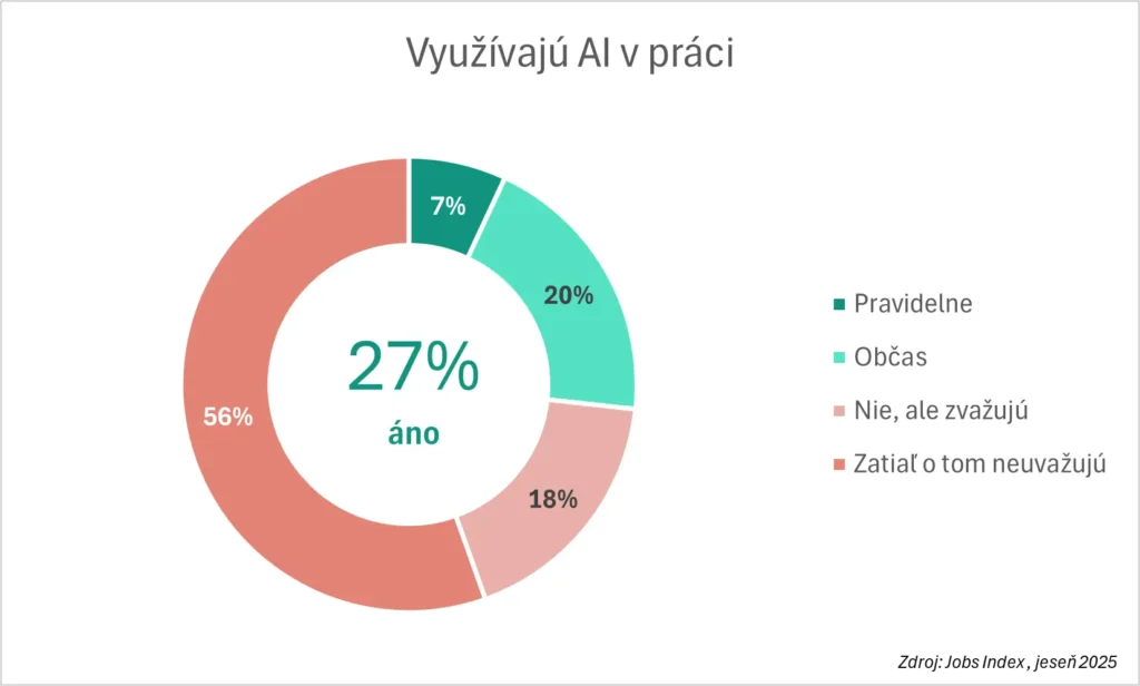 Alma Career robila v roku 2025 dva prieskumy, ktoré sa dotkli používania AI na Slovensku. Išlo o pravidelný jesenný prieskum JobsIndex a prieskum od agentúry Focus. Aj keď sú výsledky týchto prieskumov z dôvodu metodiky a miernej rozdielnosti otázok odlišné, trendy sú jasné.